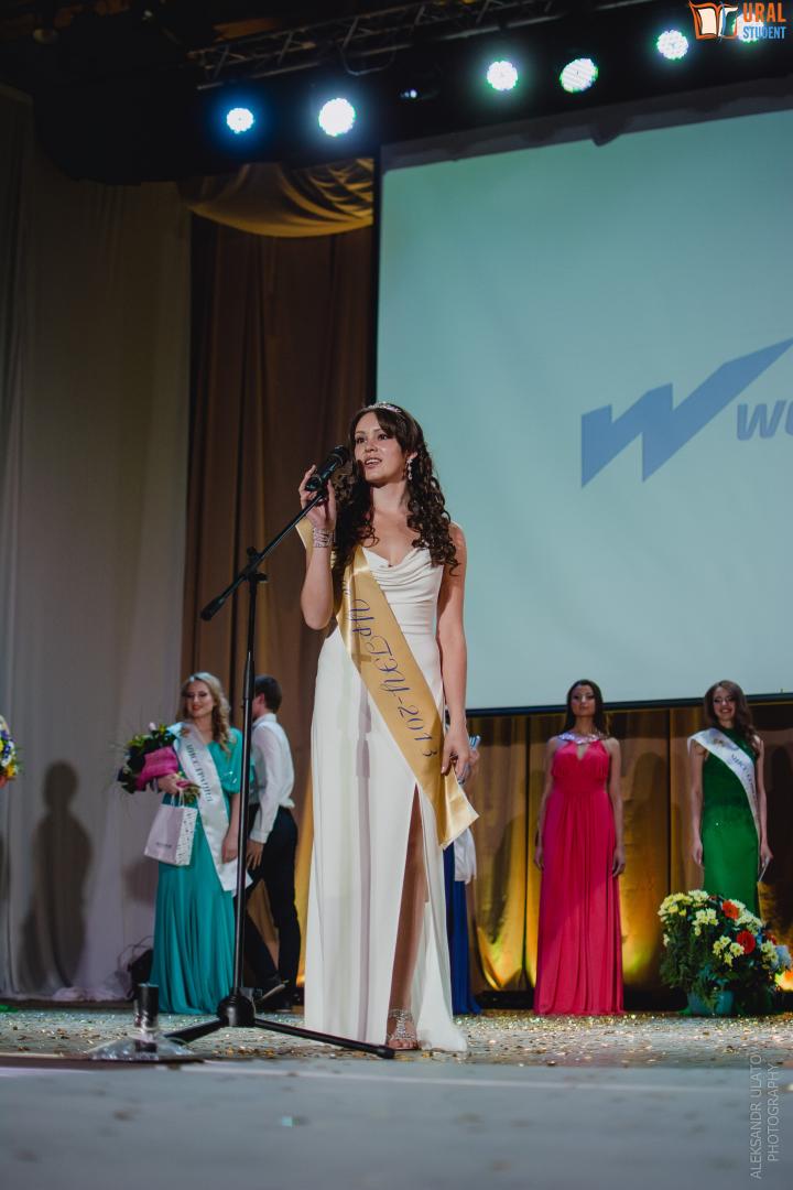 Долгожданный момент вручения звания главной красавицей университета не заставил себя долго ждать. Все девушки на сцене. Волнение и интрига зашкаливают. Каждая не отказалась бы победить, чувство победы любят все. Но победила лишь одна. Основное же звание – «Мисс УрГЭУ-2014» досталось Яне Шипуль. Остальные девушки разделили свои награды по номинациям: