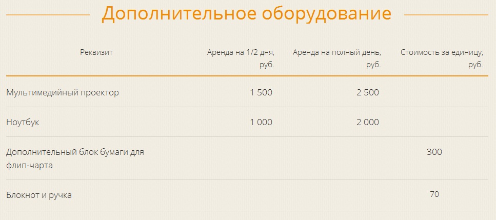 При аренде зала на 8 часов предоставляется скидка 10% (выше цена указана уже со скидкой), а также проектор бесплатно.