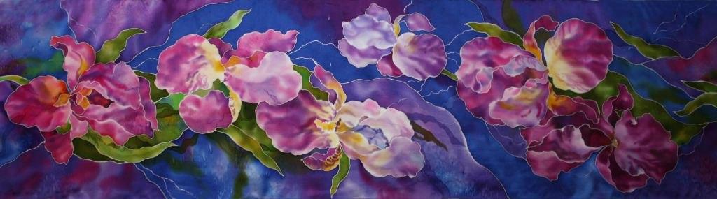 Роспись ткани ручной работы позволит Вам накинуть на плечи шарф, который переливается яркими красками и буквально излучает тепло. Это достоинство, присущее изделиям ручной работы. Они заряжены позитивной энергией, поскольку красивые вещи всегда делаются с любовью и несут в себе частицу доброты художника. С собой домашний фен и белую ткань(лучше натуральный или искусственный шелк, но можно любую тонкую ткань, подходящую для шарфика).