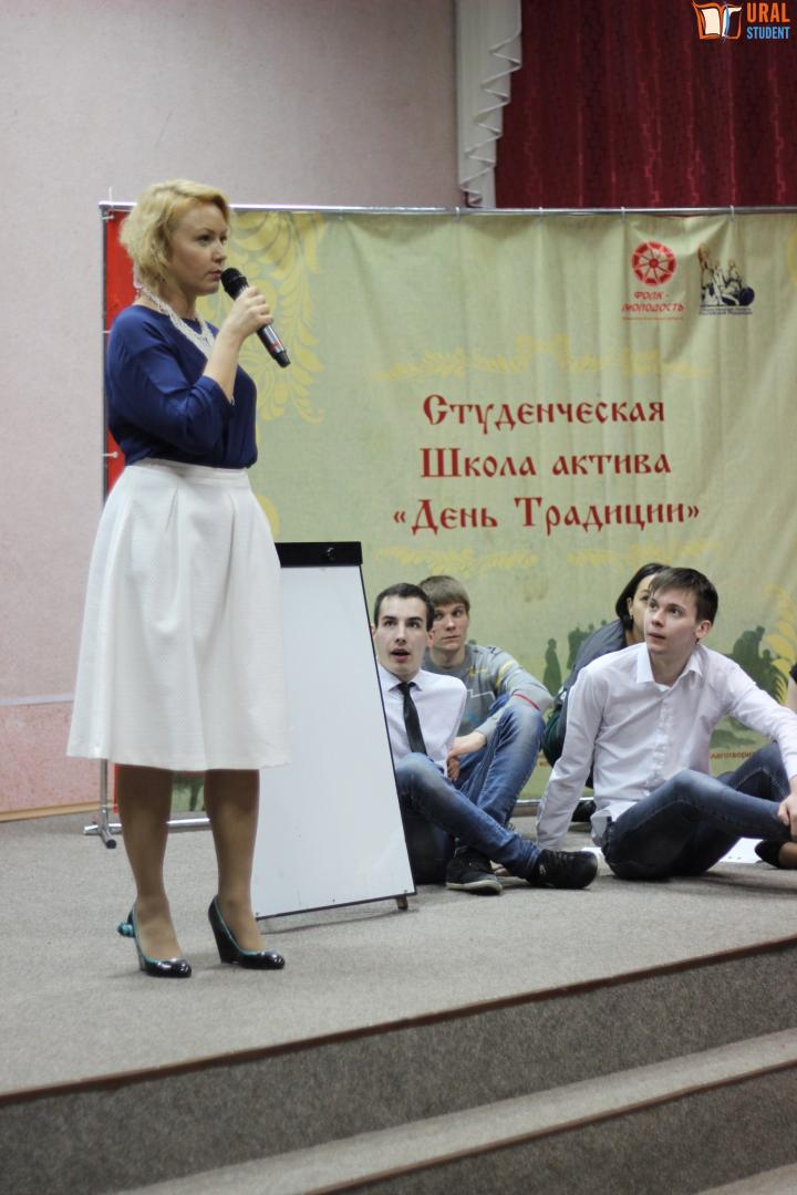 Участников приветствовали вступительным словом Председатель Общественной палаты г.Екатеринбурга Спектор Я.А., директор Центра традиционной народной культуры Среднего Урала Новопашина В.Г., член Общественной палаты Свердловской области Мануйлов А.Е. Каждый из выступающих подчеркнул важность культурного просвещения и воспитание патриотического духа среди молодежи. Знать традиции, гордиться своим прошлым, а также эффективно использовать знания, накопленные нашими предками в современной жизни, эти задачи поставили перед собой идейные вдохновители и организаторы социального проекта Молодежное общественное движение «Фолк-молодость» Марина Филимонова и Елена Пенькова. Проект уже второй год просвещает молодежь, с помощью современных интерактивных форматов в разных уголках России. Студенческая Школа актива первый раз проходила в Екатеринбурге в мае прошлого года. В этом году, учитывая активную заинтересованность участников в проекте, в программу Школы актива были добавлены мастер-класс по ораторскому искусству и проектная лаборатория. По методу Уолта Диснея студенты придумывали самые невероятные и фантастические проекты, показывая что традиционная культура может существовать в современной городской среде и быть интересной молодежи. В итоге, разрабатывались и выдвигались самые разнообразные идеи, которые можно воплотить в реальную жизнь, начиная от создания эко-городка, где посетители смогут окунуться в жизнь русской деревни, без привычных благ цивилизации, до масштабной рекламной кампании «Даешь квас молодежи! Замени заморскую колу на русский квас!». По окончанию презентации всех проектов, участники голосовали за понравившийся проект и сами определяли победителя. Несмотря на девятичасовой марафон, наполненный духом народного творчества и актуальными знаниями, которые заставляют взглянуть на традицию с другой стороны, студенты в завершении мероприятия с энтузиазмом водили русский хоровод . После мини-вечерки все участники были награждены сертификатами, сувенирами с символикой «Фолк-молодость» и призами от партнеров мероприятия.