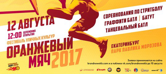 19 августа в 12:30 в центре города на улице Пушкина (от пр. Ленина до ул. Малышева) пройдёт незабываемое шоу – состоится фестиваль «Спортивная феерия», в рамках которого пройдет турнир по стритболу, воркаут, черлидинг, джампинг.